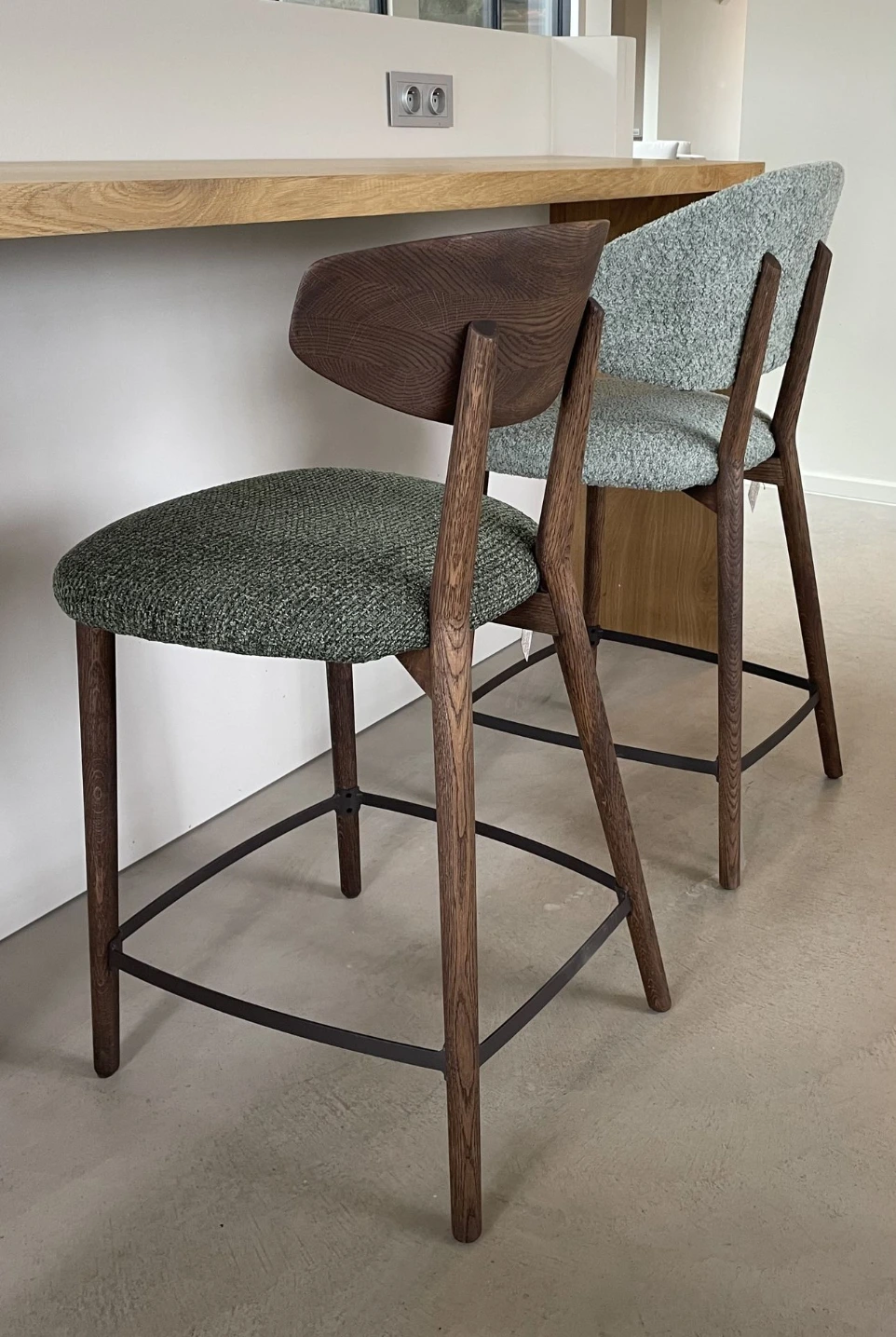 Hij was er al met of zonder armleuning , in dining- counter of barhoogte, maar krijgt nu een extra modieuze look door zijn houten rug.