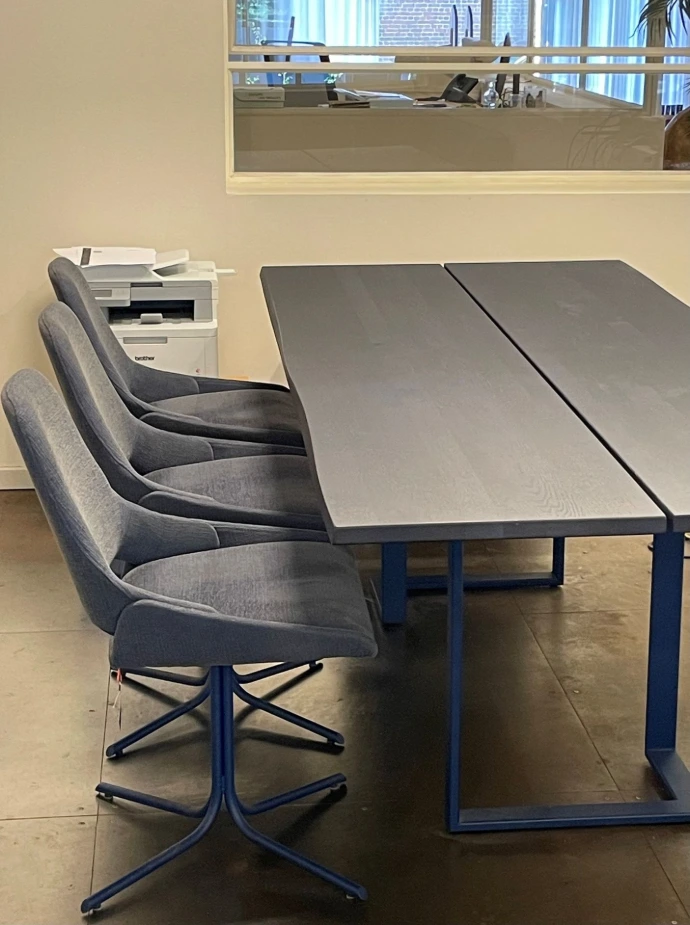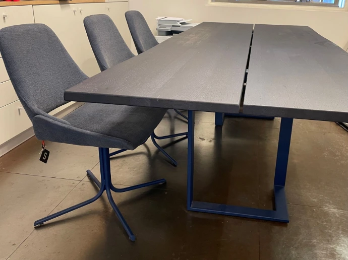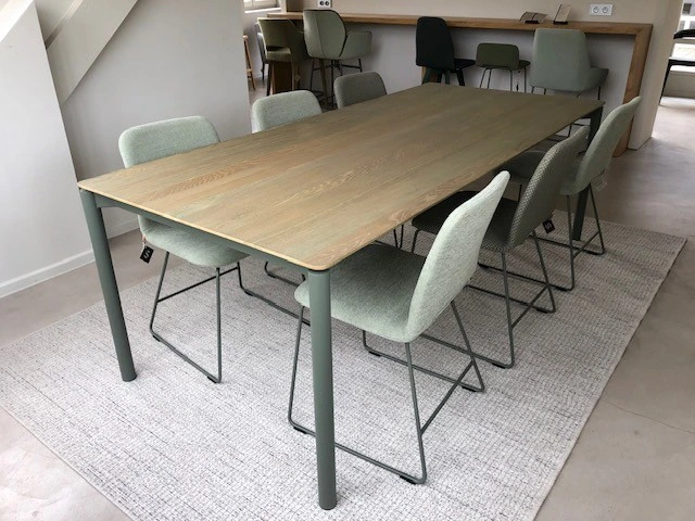 Japura eettafel model T0200- rechthoekig - vast - 240Lx100Bx76 H cm-metalen poot A39 indigo - blad eik indigo- blad in 2 delen met opening in het midden-